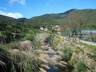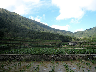 We got to the top and my mom asked someone where Bamboo Lake was. We were surprised to find out that Bamboo Lake was not a lake but the name of the area that used to be a lake hundreds or thousands of years ago. So, to deal with our disappointment, we decided to have lunch. We found a nice place with terraced dining overlooking a flower garden. The food was also good. The restaurants in the area feature free range chickens and wild mountain vegetables. After lunch we walked around the area which was full of calla lily fields. This was a very nice way to spend a sunny Autumn Saturday.