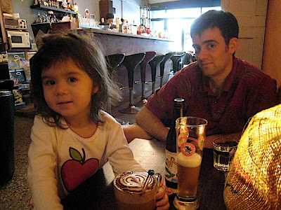 We took the bus down the mountain but didn't feel like going home so we went to our favorite coffee shop near Guandu station. We had a coffee, a lychee beer, and orange juice. Oh, and a pound cake with rose petals. Yummy! When the cake came, I decided to sing Happy Birthday to myself.