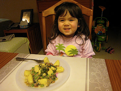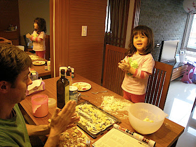 Today we made gnocchi. It was a lot of fun to get flour all over me and my parents.